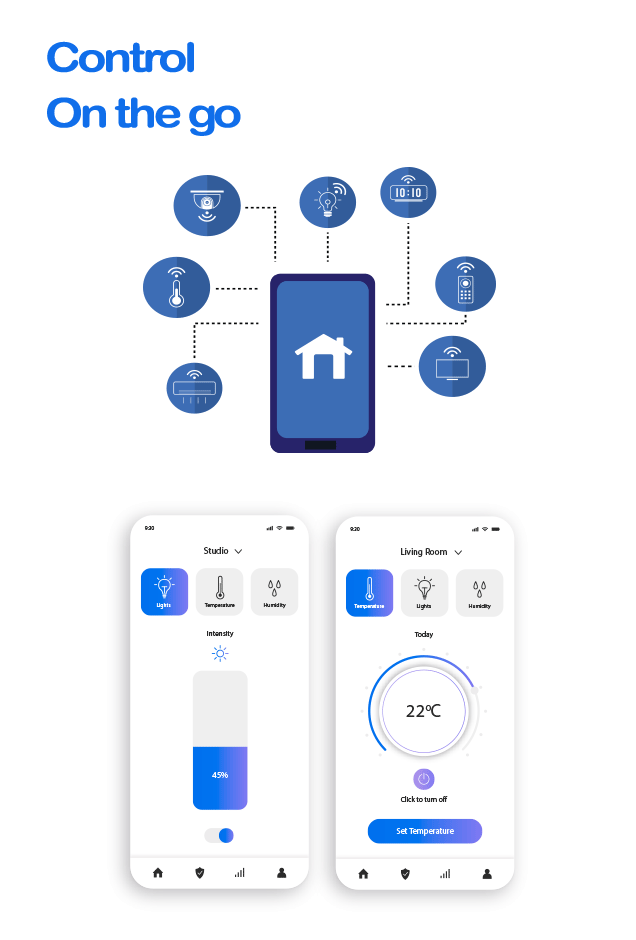 With LivZmart lighting control system, you can control your whole home when connected with LivZmart system through any of the smart phone and tablets connected to the internet. The option can include scene or mood controllers, central controller, remote control(s), and occupancy/motion sensors.